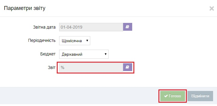 У вікні що з’явиться необхідно обрати параметри звіту: