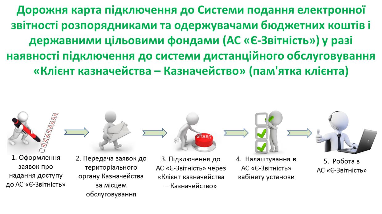 - Підключення до АС «Є-Звітність» установи, що підключилася до СДО «Клієнт Казначейства – Казначейство»: