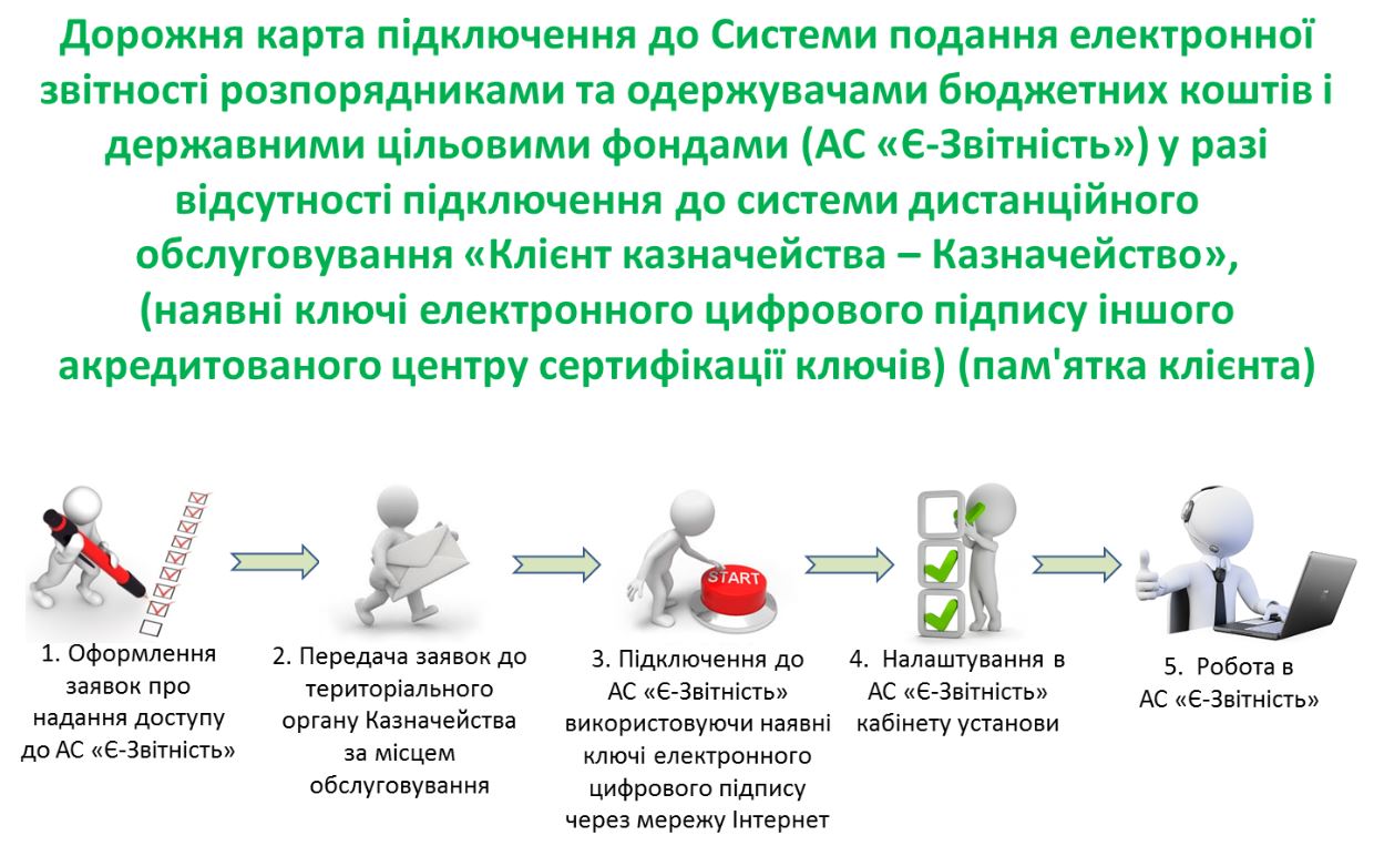 - Підключення до АС «Є-Звітність» установи, що не підключилася до СДО «Клієнт Казначейства – Казначейство» та не має ключів КЕП: