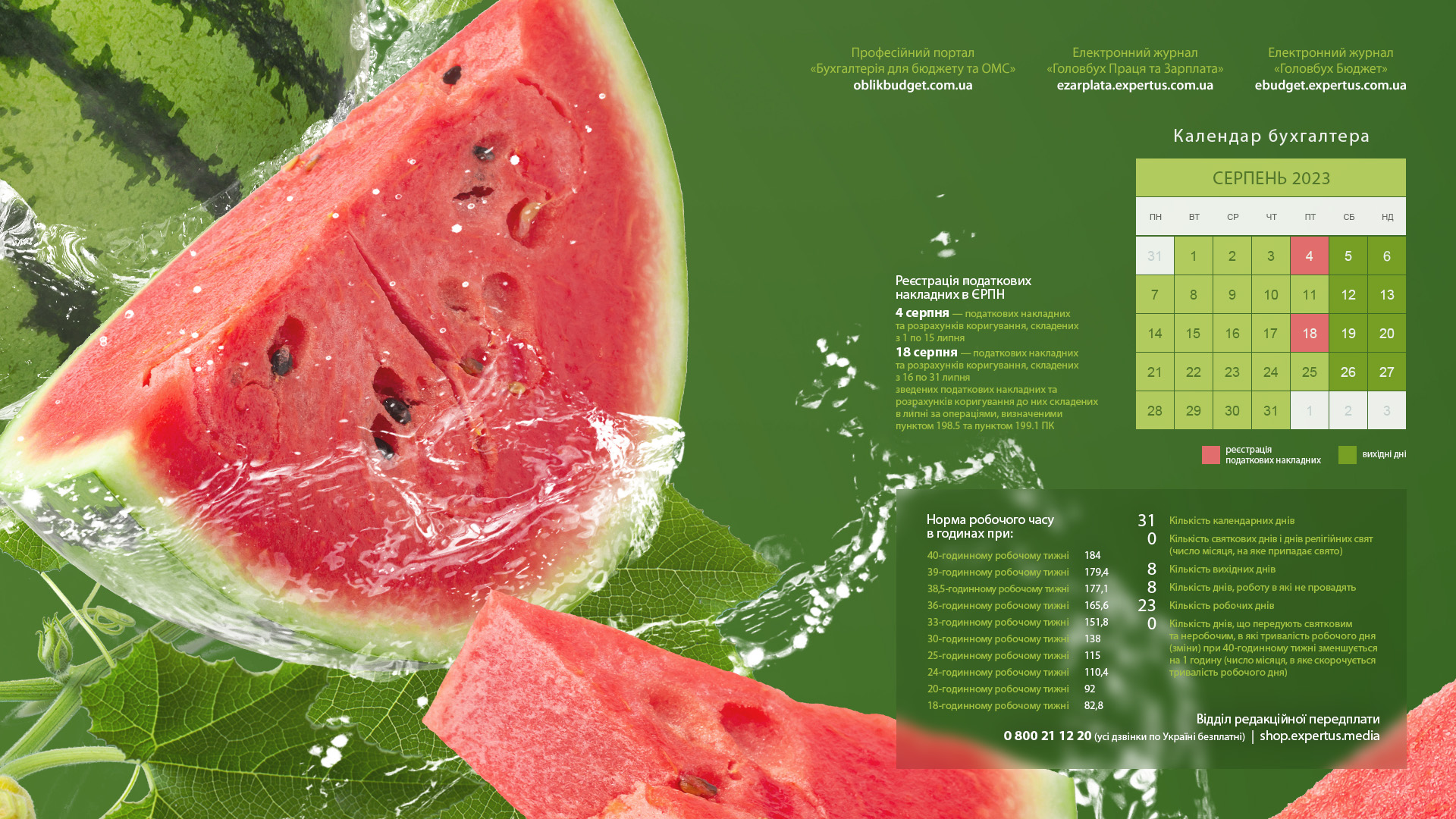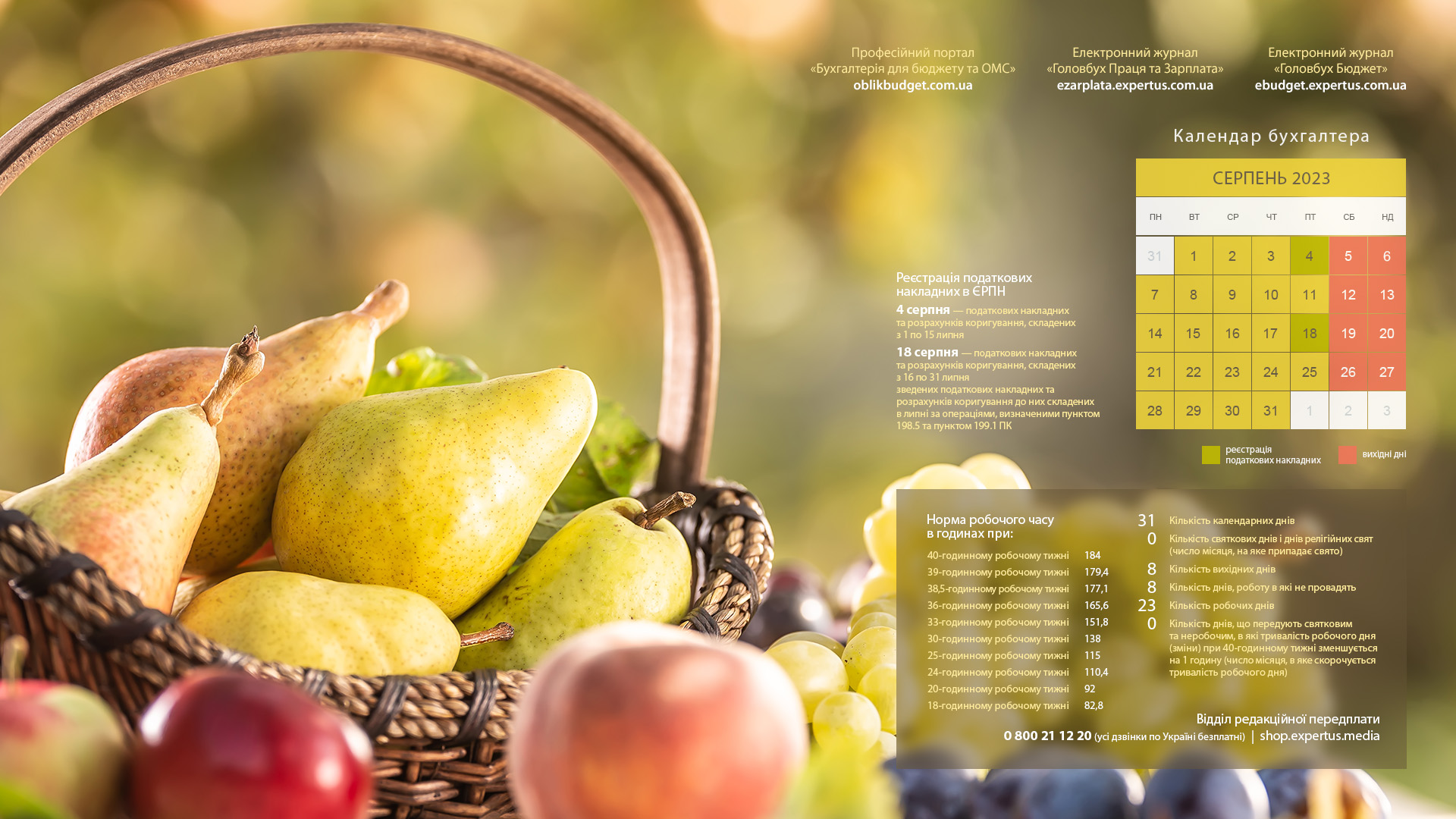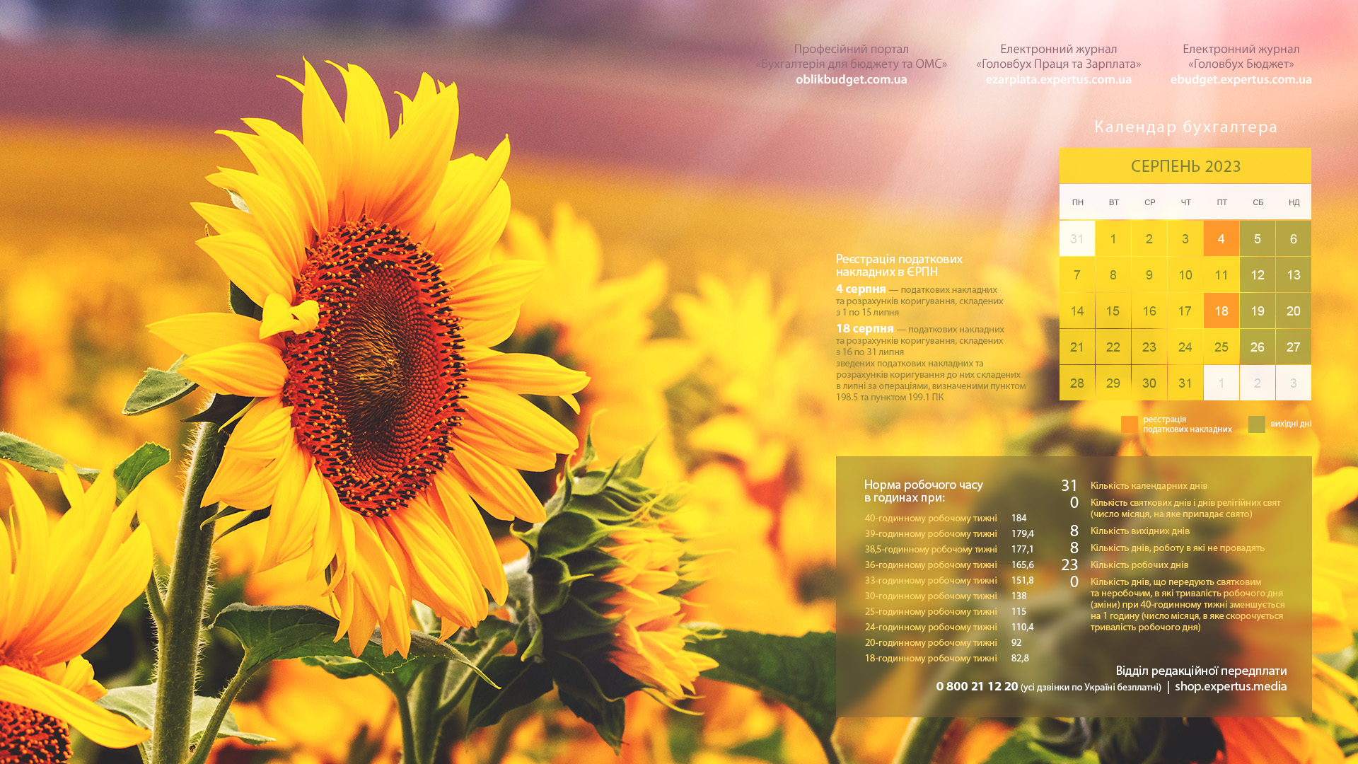 Календар бухгалтера-бюджетника на серпень 2023 року