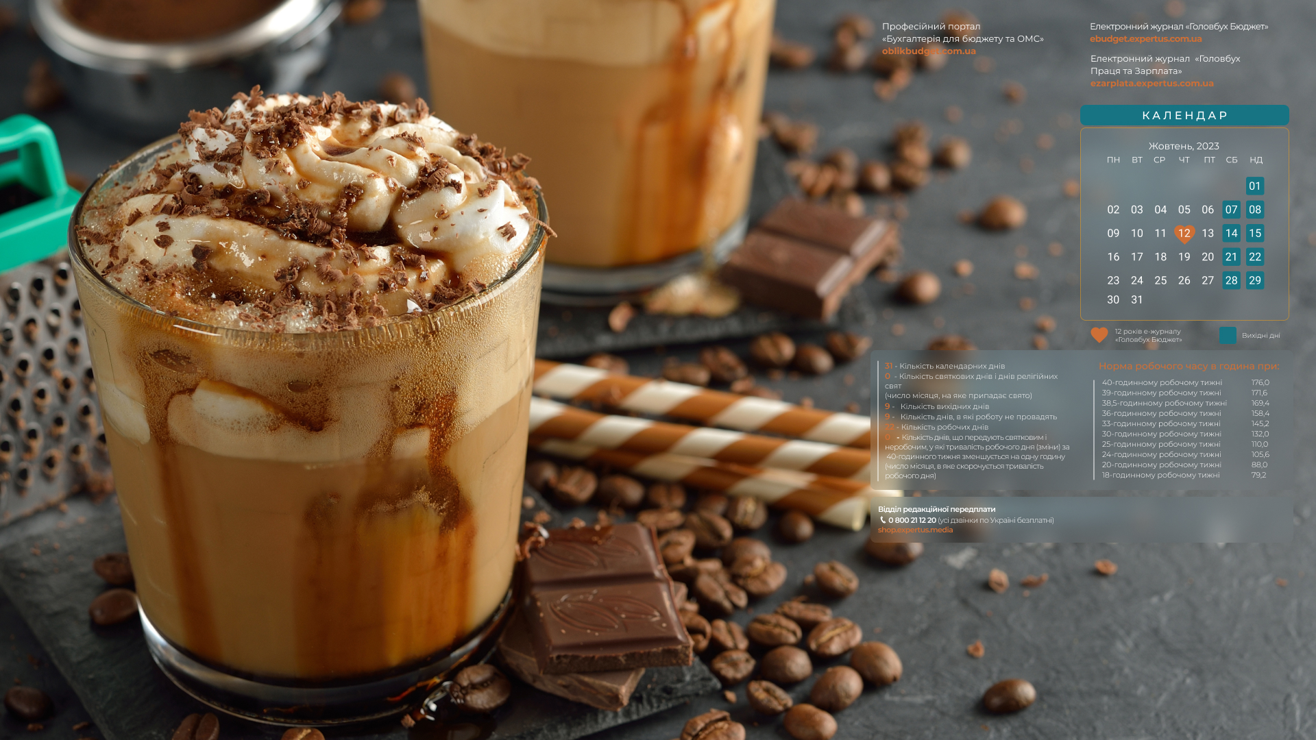 Стане в нагоді календар бухгалтера-бюджетника на жовтень. Для зручності – скачуйте заставку на робочий стіл з календарем бухгалтера на місяць.