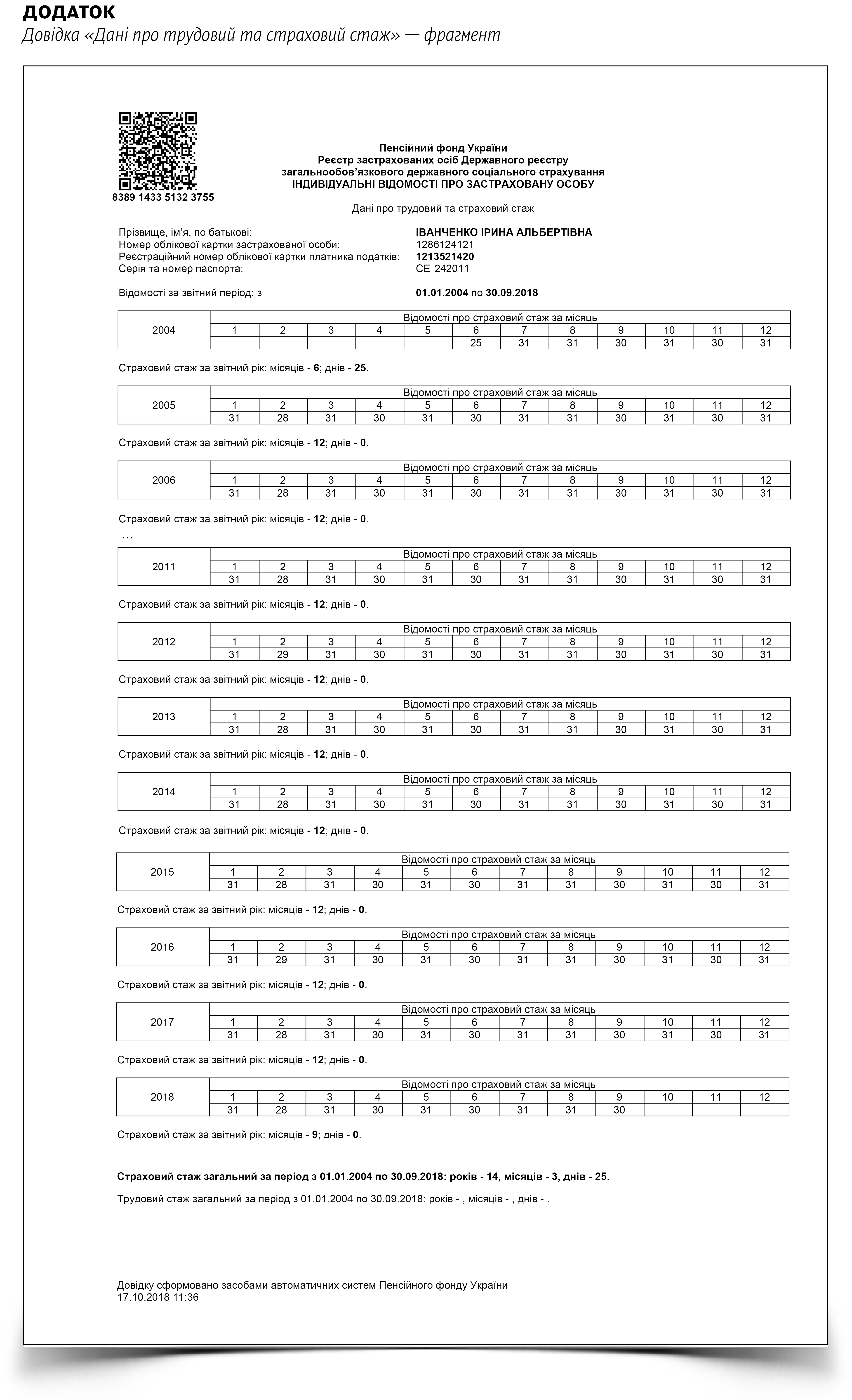 - Порахуйте стаж за довідкою «Дані про трудовий та страховий стаж».