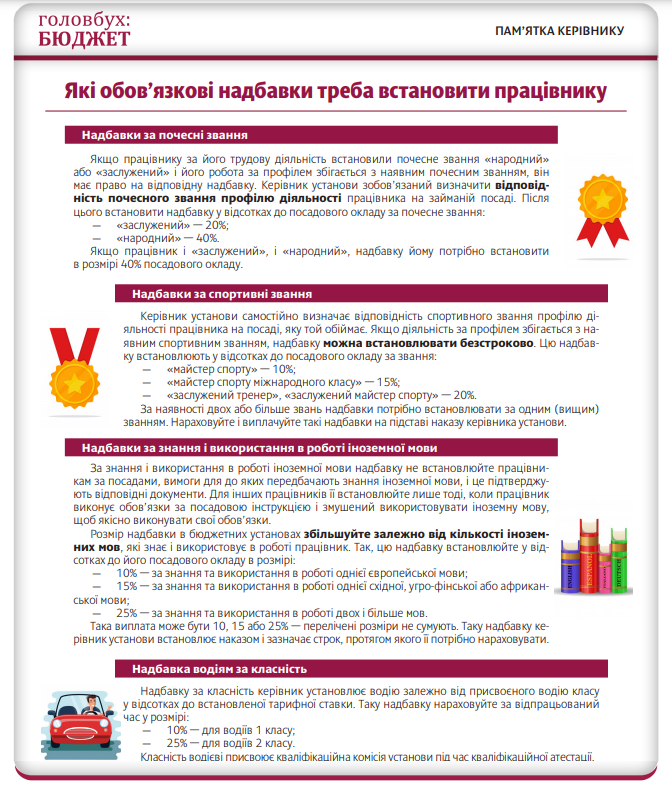 Надбавки, про які йдеться, є різними за характером та призначенням. І кожну з них керівник установи може встановити працівнику незалежно від того, чи встановив уже іншу. Утім потрібно врахувати обмеження для всіх цих трьох надбавок.